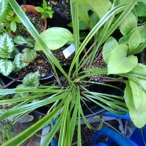 今日の花 リュウノヒゲ 白竜 斑入りの葉がキレイです。 長年少しの土で細々と生えていたモノを、鉢植えにしたらなかなかキレイ😍 寄せ植えにも使えるので重宝してます。