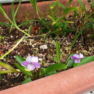 スーパートレニア 冬は室内で 暖かく なって外にだしました。 タイム 咲き出してきました。 スミレ こぼれダネで 鉢の隅でさいてます。 グロブラリア プンクタータ 満開のを撮りました。