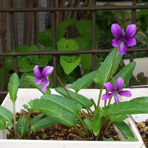 うちも“春のスミレ祭り”やってまーす!🥳✌️🎶 「うちも」って、他にどこどこがやってるんだかわからないですよね~🤣💦 お皿はもらえないけど、タネがもらえます!🤭💜 ①「マンジュリカ細弁」(勝手に名前を付けました 🙇) このシュッとした花の姿が好きです 😍 ②「三角公園推定マンジュリカ」お友達からタネを頂きました。 三角公園に咲いていたスミレからタネを頂いてきたそうです。 毛深いけど多分マンジュリカだろうなぁ~ということで(推定) ③「紫の網目スミレ」多分アリアケスミレです。 お隣のマンジュリカに押され気味です。 こうしてみるとマンジュリカって花が大きいなぁ~ 🤔 ④春の野原になったプランター ⑤プランター斜めから 🤗🎵