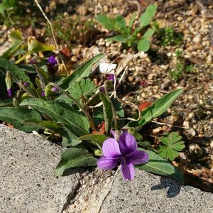 そろそろタンポポが咲いているのではとずっと下を見て歩いていました😁 いました、いました🎵 コンクリート壁の隙間でたくましく 根を張って咲いていました 隣にはすみれも‼️