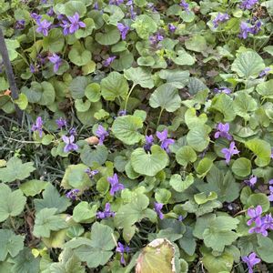 去年も一昨年も見逃したアオイスミレ、今年は見られました。早くに咲き始めるスミレ。 葉の形が葵の御紋に似ているところからの名付けだそうで。横の花弁が、横に広がらずに閉じ気味なのが見分けるポイントだと教えてもらいました。 「今年は雨が少なくて乾いてるから。雨が降るごとに植物が動くと思いますよ。」by敷地管理事務所のスタッフさん