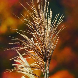 紅葉に染まるススキ