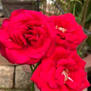真っ赤なミニバラ🌹が3輪開花しました🌹🌹🌹 🏷真っ赤な火曜日 🏷あっ火曜日 🏷花曜日 参加します🌹🌹🌹