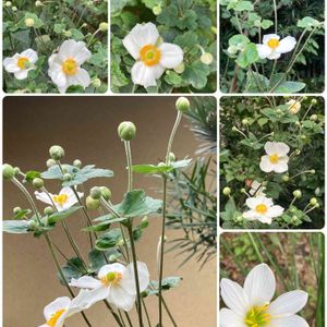 庭のシュウメイギク 2分咲き🤍🤍🤍🤍🤍 白い花びらに黄色い蕊とても綺麗🥰 ↘️ゼフィランサスも綺麗に咲いてます🤍