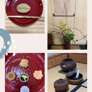 火曜日午後はお茶のお稽古🍵🍵 お菓子 栗きんとん、干菓子 お花 ススキ🌾、オミナエシ ホトトギス、❓ お点前 なかおき