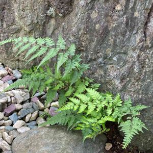 🏷毎月4日はシダの日 参加します💚💚💚 庭の石の陰にひっそりと🎶 グリーンが美しいです💚