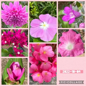 朝パト🎶 可愛いピンクのお花集めて見ました💕💗💞 ➡️真ん中朝顔さんまだ頑張ってます🥰