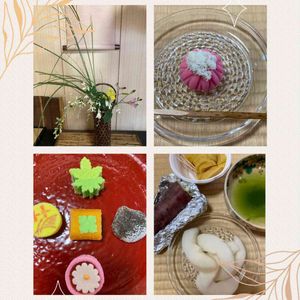 火曜午後はお茶のおけいこ お花 ススキ、ホトトギス、ハギ、ミズヒキ、オミナエシ お菓子 着せ綿 ↘️おしゃべりタイム 焼き芋、梨かおり