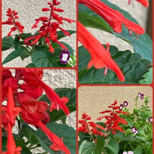 🏷あっ火曜日 🏷真っ赤な火曜日 🏷花曜日 参加します❤️❤️❤️❤️❤️ 寄せ植えのサルビア この子の顔 庭のメドーセージとおんなじお顔 ビックリ‼️ メドーセージはサルビア・ガラニチカと言うんだー‼️