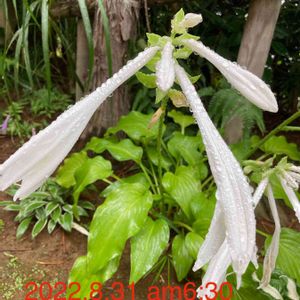♡今日のお花ギボウシ♡ 真っ白で大きなお花のギボウシ雨に打たれてる ガンバレ📣📣📣