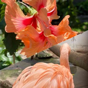 🏷日曜ビタミンカラー♪ ⬆️ハイビスカスフラミンゴ🦩 ⬇️草津熱帯圏のフラミンゴ🦩
