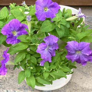 💙夏空ペチュニア💙 去年の生協産苗 無事廊下で冬越し 冬中咲いていた❗️❗️😵 切り戻しして無いので垂れ下がってる😅
