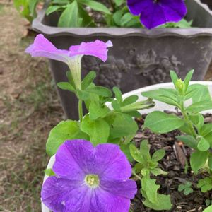 ⬆️切り戻しした夏空ペチュニアの濃い青が咲き出した🎶 ⬇️切り戻しをした お花の方が根付き、お花が開花✌️✌️✌️