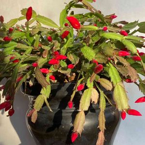 今年のシャコバサボテンは素晴らしい❤️ 真っ赤な蕾がいっぱい 夏が暑かったから❓ 🏷金曜日の蕾たち 参加します❣️3個目😅