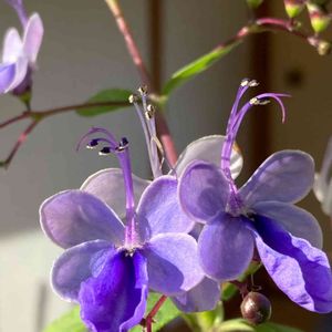 🏷水曜日は水色 参加します💙💙💙💙💙 今盛んに咲いてる 我が家のブルーエルフィンちゃん🎶🧚♀️🧚🧚♂️ 花弁は5枚 側面に2枚ずつ 下部に内側にカーブしている1枚 上部に雄蕊4本、雌蕊1本🥰