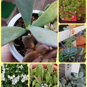 ↖️「ハムシー」一時駄目になり掛けたけど やっと少しずつ成長して来ました👊😆🎵 ⬅️「リトープス」 上手く脱皮が、出来ています。お花咲かせてね👍 ↙️「熊童子」肉厚の葉っぱがとても可愛い先端のギザギザの爪も可愛いですよね。やっとここまで成長しました。お花咲かせてね👍 ↗️ぷくぷくが、可愛い 「月美人」 ➡️「デザートローズ」 紅葉も終わりだんだんと緑色に戻って居ます。 ↘️『臥牛』(がぎゅう) 「ガステリア子宝」 ススキノキ科 ガステリア続 良く行くJAで見つけました 500円で買いました お花咲くのを楽しみにしています。