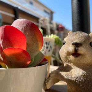2投稿目失礼しますm(*_ _)m 前後枯れっ葉のデザートローズ なので横から✧p📷qω•,,´)パシャ✧ リスちゃん脇役なのに主役の顔してる(笑)