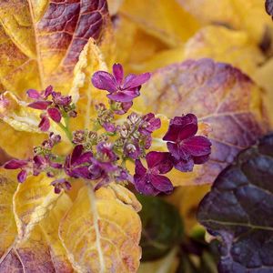 秋の紫陽花モミジ🧡 紅葉しながら花咲いたりしてました。