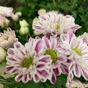 優雅さと繊細さを併せ持つ、「管咲きのマム」でおはようございます🥰🌼💞 トルコキキョウや紫の洋蘭・バンダ等と共にマンションのロビー装花にパーッと華やかに飾られていました❣️ 淡いピンクの細管の花先だけ、ほんのりグリーンがかったグラデーションある色彩が魅力です💜🤍🩷🤍💚🤍 "管咲きのマム"は、ヨーロッパやアメリカで開発された比較的新しい品種の洋菊。 細長い筒状の花弁が放射状にまっすぐ伸びて咲く花姿は、夏の夜空に彩りを添える打ち上げ花火のようなイメージを想起させてくれました🎇👘✨ ー花言葉は、「清らかな愛」、「甘い夢」…他。