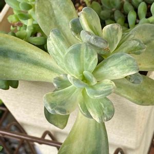 花友さんから貰った多肉ちゃん💕 夏が越せるか心配だったけど、なんとか 元気そう☺️ 名前分からないって言ってたんだけど、 誰かしら? イリアに似てる?