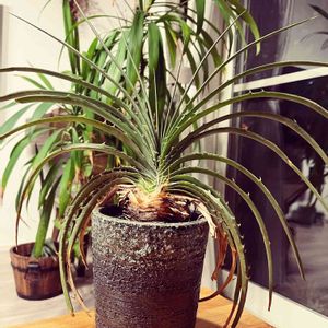 (左)トゥスクパン(ピンウィール) (右)シルクベール ピンウィールを探してて トゥスクパンに出会う。 同じかもと販売者さんが おっしゃってました。 大きくしたいなー 葉数が多いの好きです♪♪😊 ピンクベラとか このシルクベールとか こんな葉姿も好き❤️ モルタル背景は自作です🥰