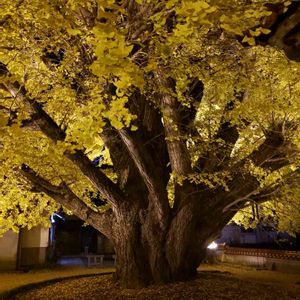 先程撮ったイチョウの木です 夜の明かりで見ると分かるのですが、まだ左側に青い葉が残っています。あと数日経つと、もっと鮮やかな黄色になると思います