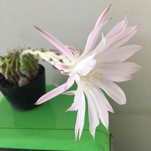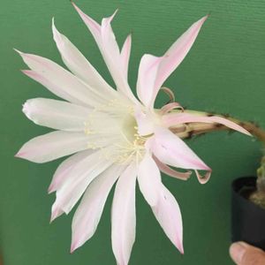 ついに 前日朝市で 100円で購入した サポちゃんが咲いてました 子持ちちゃんのが 開花してあと一つはピンクのつぼみ あと一つはしろの半開きの開花♡❤️♡💜♡💗♡