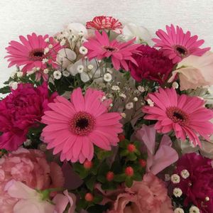 月曜日は入学式❤️ 玄関を飾ってくれる お花💐 ガーベラがピンクで 可愛い💕