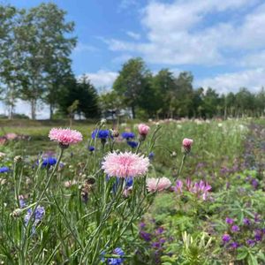 今日のお花「ヤグルマギク」 昨年の7月picです! 空の色と…🩵🤍 草の色と…💚 お花の色が優しいな〜🩷💙