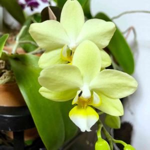私は、探していた。 少ない室内の光でも育ち… シダ系? (`・ω・´)胞子が飛ぶかっ⁈ 観葉植物…? 花が咲くものが良いな〜 花粉が飛ぶか… 花粉の飛ばない花⁈ そんな都合の良い植物ある訳な… ( ゚д゚)あった♡ 『胡蝶蘭』だー。 【⚠️再度調べると… 全く花粉が無いのではなく、 他の花に比べ花粉の飛散がかなり少ないとの事。 アレルギーなどが 出てしまう方もおられるかもです…】 十数年前に私は、 手のひらに乗るほどの小さな胡蝶蘭だったのかな。 栽培に失敗していた。 『難しい』 そんなイメージがあった。 今度はっ…今度こそっ (`・ω・´)みてらっしゃいっ‼︎ 場所がない族は、小さな胡蝶蘭を探し求める… ( ゚д゚)ミディ胡蝶蘭? あの お祝いとかで見かける ゴージャスな胡蝶蘭の小さい版…⁈ これかしら。 昔、手にした胡蝶蘭らしき植物は。 (`・ω・´)ポチッ♡ ↑ ネット購入。 …届いたミディ胡蝶蘭はー。 ((((;゚Д゚)))))))おぅっ‼︎ 思っていたより大き… もといっ 立派だった〜‼︎ ネットで見ていると、サイズ感が掴めないね… ( ;∀;)場所の確保っ‼︎ しかし こちらの画像。原種の蘭なのかな。 『Phil. (Nobby’s Green Finger ‘Nobby’ × violacea fma.alba ‘MS Round’)』 小難しい品種名… ( ;∀;) 小振りだ。 丸みを帯びた葉。 その隙間から、 ちょこんと妖精のような花が咲く。 花びらの先の、ライトグリーンが綺麗だー。 (*´ω`*)アナタは可愛らしいねー。 胡蝶蘭の栽培は、面白い。 根も光合成するらしい。 用土ではなく、水苔で育てる。 カラカラに乾いたら、 温かい水温のシャワーで水やり。 シャワーであげるのは、 空気を含んだ水が良いからだそうだ。 乾いた根は、 ( ゚д゚)わぁー。 見ているそばから、ふっくらとするー。 …この育て方で良いのかっ⁈ 少々疑問だが、 1度開花を終えたミディ胡蝶蘭の花芽が 2つ上がってきている。 難しいと思っていた胡蝶蘭。 用土を使わず花粉の飛散も少ない。 カーテン越しの光で育つ。 室内で楽しめるー。 (`・ω・´)素晴らしいっ‼︎ …ただしっ ミディ胡蝶蘭は気品・高級感があって、 我が家の一角だけがセレブ化… なんか。 浮いているようなー。 ( ;∀;)