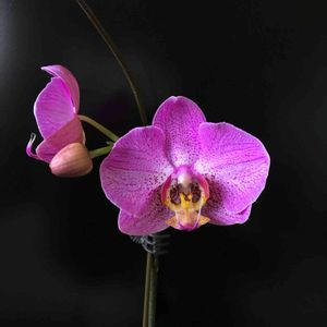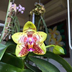 ウチで一番お高い胡蝶蘭が咲きました😆 不注意で花芽折って3ヶ月ちょっと、とうとう花を見る事が出来ました。 小輪ながら弁が厚く色彩のはっきりした名花です。 ファレノプシス オーキッド ワールド ‘ボニー バスケス’ Phal. Orchid World ‘Bonnie Vasquez’ GM/12th WOC SM/JOGA AM/AOS