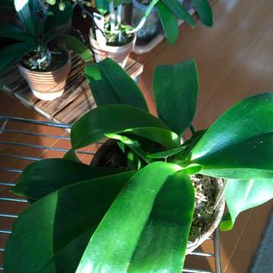 2月の東京ドームの世界らん展でゲットした名無しの椎名洋ラン園さんのミニ胡蝶蘭🌸 満開になりました。 花が‘サクラン’寄りに開いている個体になっています。新たな品種を作出する過程の実生苗なのでしょう。 これに似た抱え咲の花簪のようなミニ胡蝶蘭がわたしも持っていてお気に入りなのです。それとの姉妹株でしょうが、これは葉に斑の痕跡が残っています。この葉っぱがお気に入りでお迎えしました。 シレリアナ由来かしら。