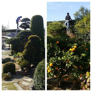 今日から庭師さんが来ています。いつもより3週間ほど早め。 天気もいいし、作業が捗りますね。