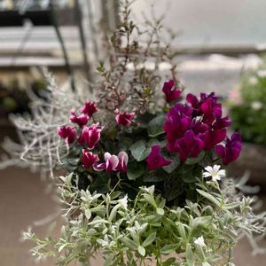 11月の寄せ植え ガーデンシクラメン、オレアリア、プラチーナ 秋らしくしっとりとした雰囲気です カラーリーフを使ってオシャレに仕上げました🥰