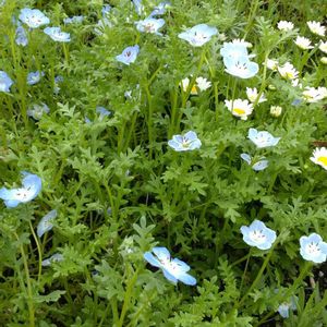 おはようございます😄… 庭のネモフィラ & ノースポールさんです😋… ネモフィラさんが けっこう広がってきました😚… 今は曇って☁ますが これから雨☔の予報なので また地面にべったり張り付くのだろうな😅💦… 青い空に青い花の風景が素敵なのですが… 今のうちに pic📸です🤗💕…