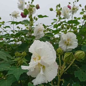 こんにちは😄 仕事が忙しくて 久しぶりの投稿になりました😅💦… 庭のタイタンビカス(ピーチホワイト)さんです😋。 台風が過ぎて 大したことはないと思ってましたが 皇帝ヒマワリさんが折れたり倒れたりしたので 手直ししました😓… なんとか咲いてくれるといいなです🤤~💕