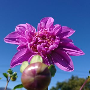 こんにちは😄 皇帝ダリアさんの八重咲き 一番花です😋… 越冬してくれた 普通の子も めちゃくちゃ成長してます😎… 秋晴れの空に美しい花を 晩秋まで咲かせてほしいと思います🤗♪…