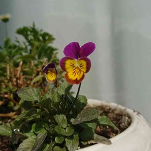 こんにちは😄… 決して綺麗な picでは ありませんが 昨年可愛がってたビオラさんの こぼれ種🌱さんです😉… なんか愛着があって 今年も育ててあげたいと思ってます😎♪ 背景は こぼれ種芽🌱のノースポールさんです😋💕