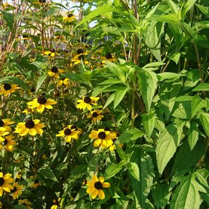 こんにちは😄… ルドベキア(アイリッシュアイ)さんです😉… プレーリーサンさんと似てますが 少しだけ違います(前pic参照)👀♪ 背景の木は シマトネリコです😉…