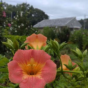 おはようございます😄… いやー昨日の午後は凄い豪雨でした😅💦 ノウゼンカズラさんが またまた咲いてくれましたよ(*^^*)💛 ムクゲさんや タイタンビカス🌺さんなどが咲く 夏の庭は華やかで大好きです😋… フヨウ属に🙌 植物とともに過ごす 日常生活は幸せですよね(*´ω`*)♪♫
