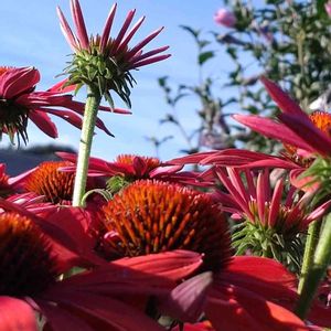 おはようございます😄… 大好きな エキナセア(パウワウ)さんが いっぱい咲いてくれました😋… 可愛いい イガグリ頭に接近して pic…👀📸✨… やっぱり夏の花てすね… 青空が似合います🤗💓