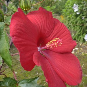 おはようございます😄… 今年 5月初旬にお迎えした タイタンビカス(アドニス)さんが咲きました(*^^*)💓 レッド🌺の品種も いっぱいありますが 花びらの光沢が素敵だと思います🤗♪… まるでハイビスカス🌺ちゃん… 背丈は1.5m強で花は中輪18cmくらいになる予定です👀…