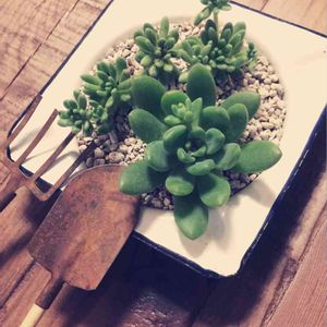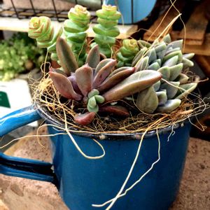 ずっと雨ですね☂️ ホーローの灰皿に 多肉ちゃん 植えました😊