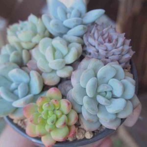 こちらも雨ざらし多肉。 西陽ガンガンのミルク缶の上に置いてあるホーローボウルの寄せ植えの中の白鳳hyb。なんでこんなに綺麗で大きく成長したのか不思議🤔手のひらより大きいです。ノンフィルターです。