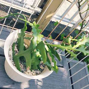 昨年挿し木したフィッシュボーンカクタス。 親株の様に格好良く骨々ならず、新芽から気根だしまくりで野放図にひたすら伸びまくる… オシャレ雑貨屋にアートな鉢で売ってるような身分だったのに100均の鉢に植えたせいで自暴自棄になってしまったのか😞 お洒落に仕立て直しは出来るのだろうか💨