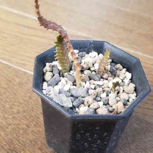 コレクションNo.12 ユーフォルビア 飛竜 初めて種を買い、蒔いたやつ。 8粒蒔いて4株が生き残った。 2年前に一本目の葉?枝?が出てたが、それ以降変化が感じられない。 土の下で大根ができているのか、はたまた、まだまだ時間がかかるのか。