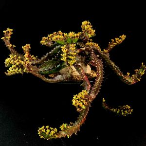 ユーフォルビア飛竜に花が咲きました 雄花と雌花が同じ株に咲くらしいけど どうやらうちのは雄花だけのようです