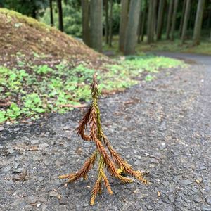 杉の葉が上から落ちてきた?🤔 それとも風吹いて立ち上がった?🤔 なんでもない自然の造形美 今日は急な法面の草刈り 土踏まずに「ふんばる君」というアイゼン刃を装着して安定させてます 山作業なので、大きなクモ🕷の巣に引っかかることも😫 ゾゾゾー😱いゃ〜ん💦