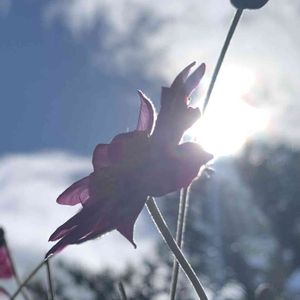 太陽と八重咲赤シュウメイギク いつもの逆光👍