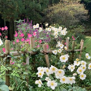 シュウメイギクも終盤に… 落ち葉🍂掃除🧹 大きな葉の木蓮は、ツツジやさつき、木瓜の隙間に入りこむので手作業で取り除きました。そのまま腐葉土でもいいですけど、なーんかね〜😅 取り除きたいのよー♪